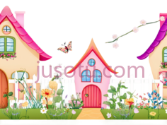 房子,栅栏,蝴蝶,卡通,童话,粉色,白色,绿色