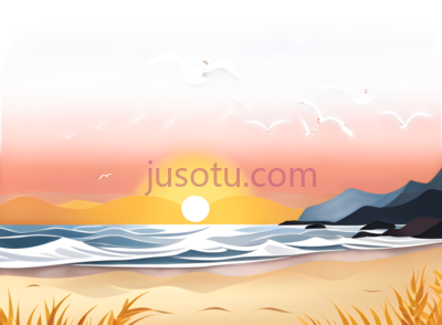 海鸥,太阳,沙滩,插画,白色,黄色,蓝色