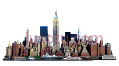 建筑群,乐高积木搭建,红色,蓝色,黄色,绿色